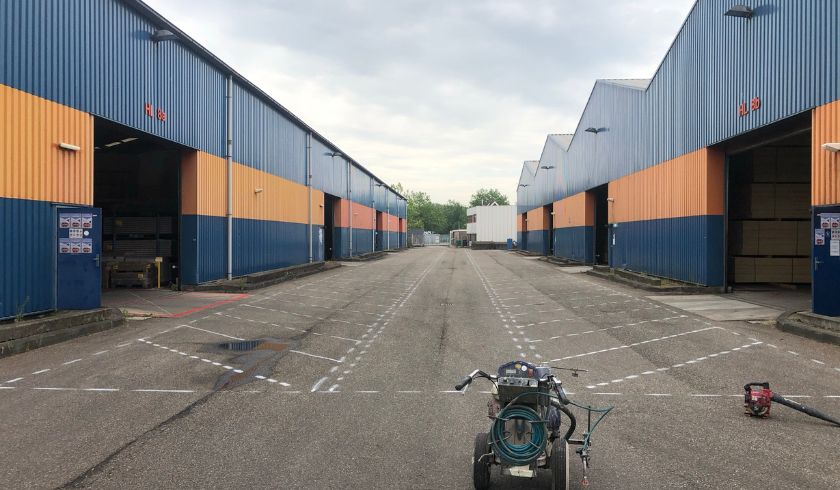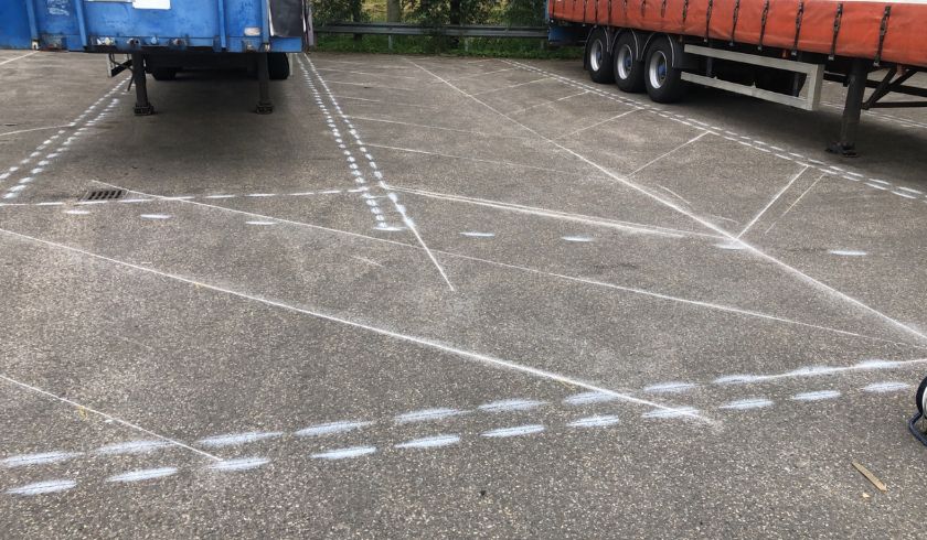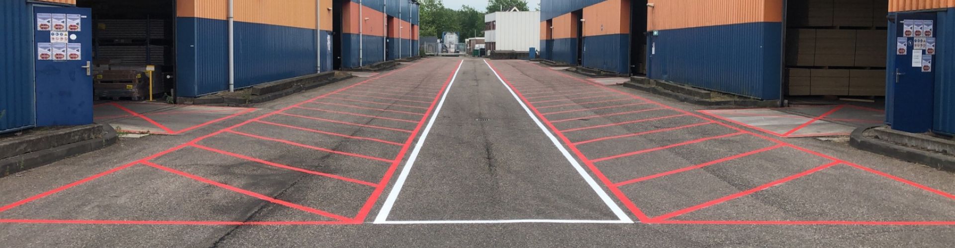 Deze zone geeft hierdoor weer dat het verboden is voor andere voertuigen dan heftrucks om hier te parkeren of rijden. Voor dit project is er gebruik gemaakt van de 2-componenten wegenverf.