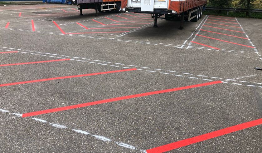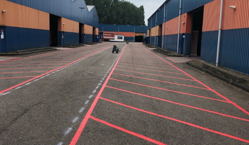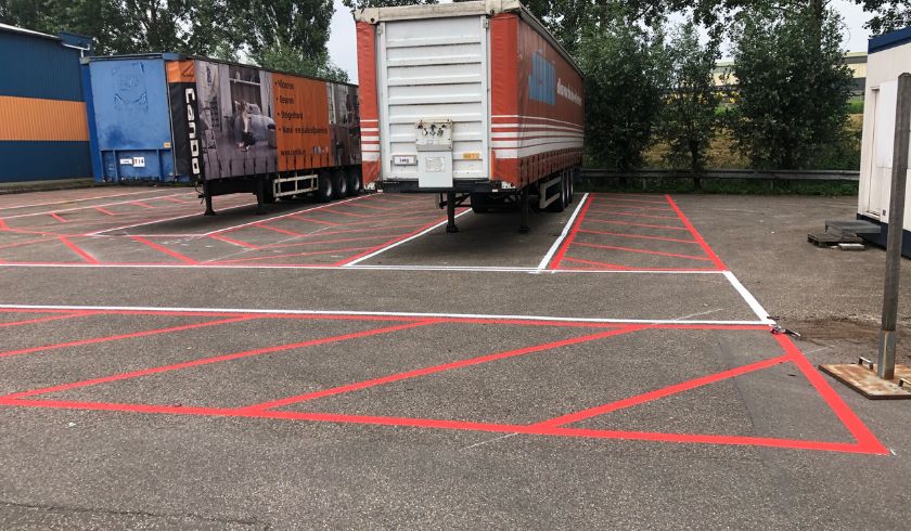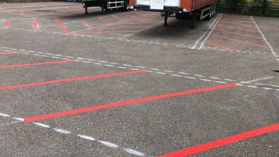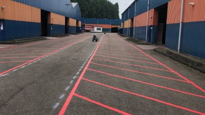 Zo hebben wij een duidelijke laadstrook mogen aan brengen voor de vrachtwagens. Deze markering is zeer duidelijk te herkennen door zijn witte kleur. Daarnaast hebben wij ook een heldere duiding gegeven middels de rode markeringen omdat de zones voor de heftrucks te bepalen.